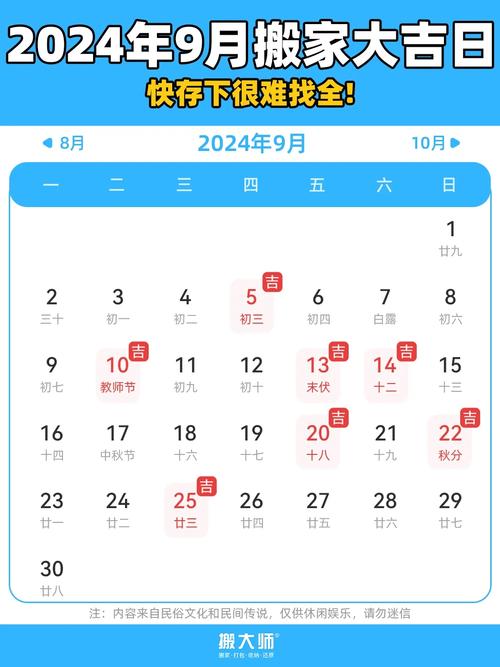 正在陈腐的中国文明中,黄讲谷旦被视为主要的时光节面,特别正在举办婚礼、停业、搬场等主要运动时,挑选一个黄讲谷旦尤其要害。每一年玄月,跟着秋季的到去,天然界的变更战阳光的支敛,为我们带去了很多值得庆贺的日子。那末,阳历9月毕竟有几多个黄讲谷旦呢?