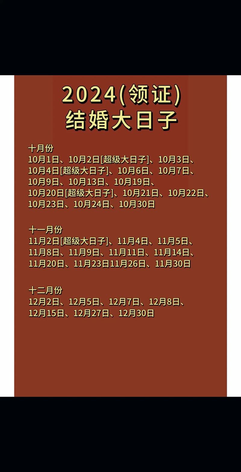 当道到婚礼打算时,挑选一个吉利的日子相当主要,由于它能够为您的婚姻带去好运战幸运。对2024年,以下是一些没有容错过的成婚谷旦: