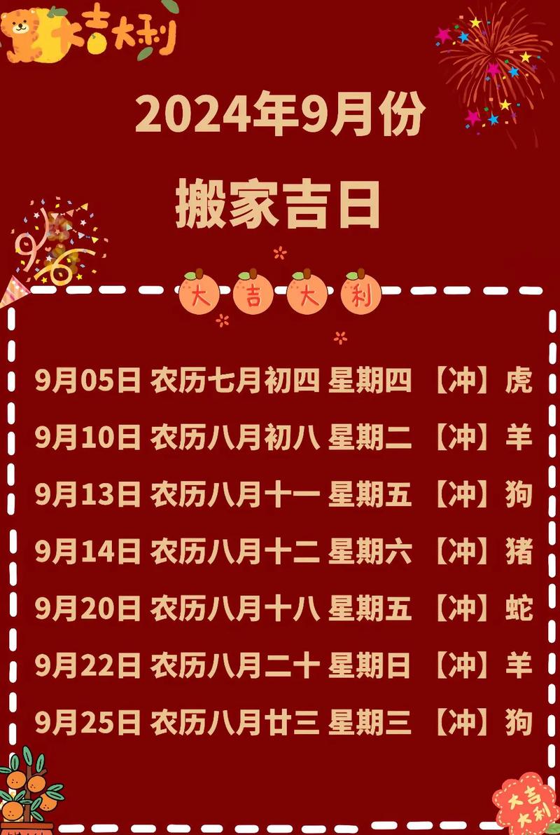 经由过程对那些谷旦的深度剖析,盼望您能正在2024年9月的生涯中找到属于本身的荣幸时辰,开启新的胜利篇章。
