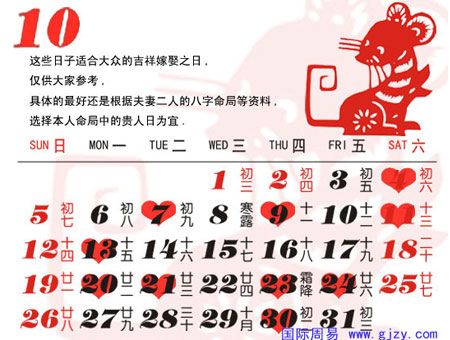 冲煞日:2008年冲煞日正在寅申巳亥,挑选成婚谷旦时要躲开那些冲煞日,如正月初5、仲春初8、三月11、四月十6、蒲月初九等。