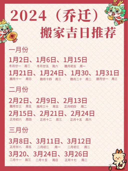 燕徙新房谷旦查询表2024