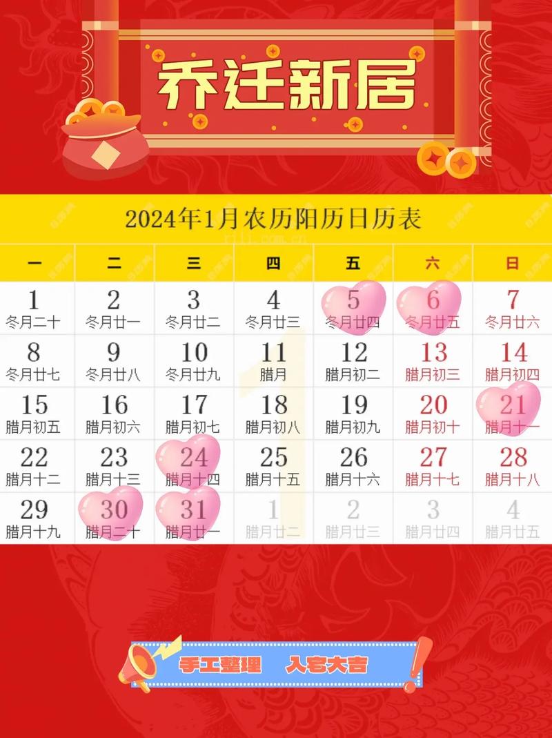 3. 吉利数字之日:属虎人燕徙新房时,也能够斟酌挑选一些吉利数字做为燕徙日。比方,正月初8、三月初3、蒲月初7、七月初5、玄月初3、十一月月朔,那些日子皆露稀有字“三”,寄意吉利快意、诸事顺遂。