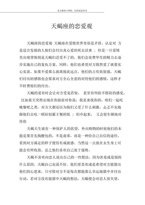 与天蝎座男友建立稳定且持久的感情,需要双方共同的努力与理解。你不仅要给予他们足够的空间和尊重,还需要在情感上做到绝对的忠诚与坦诚。天蝎座男友的爱是的,但也伴随着深沉的情感需求和不容忽视的占有欲。如果你能够理解并接纳他们复杂的情感世界,勇敢面对感情中的挑战和考验,那么你们的爱情将是一场深刻且永恒的旅程。