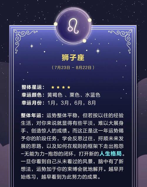 2024年对于70年出生的狮子座来说,是一个非同凡响的年份。这一年,星象的变化将为他们带来巨大的机遇和挑战。这个时期的狮子座,往往在思维与行动上展现出强烈的个性,但也会在某些层面面临人生的重大决策。那么,究竟这个年份是否能成为他们一生中的转折点或之年呢?让我们一探究竟。