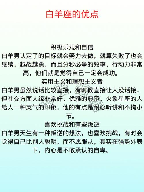 属猪白羊座男性性格复杂而鲜明,兼具白羊座的阳刚和属猪的温和。他们拥有十足的主动性,热情洋溢,但也可能表现出冲动和急躁。