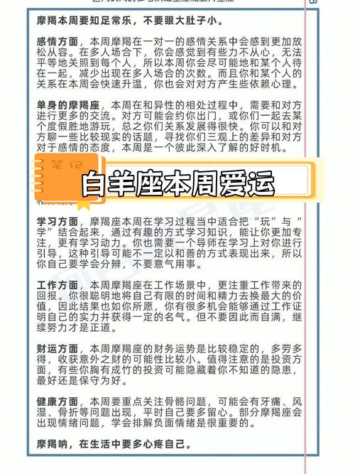 了解更多关于白羊座男爱情运势的细节,可以帮助你更好地规划和应对即将到来的各种情感挑战和机遇。希望这篇分析能够为你提供有价值的见解,助你在今年的爱情道路上取得美好的进展。