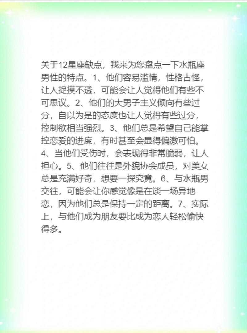 水瓶座男性格古怪的特点,既是他们个性中不可忽视的一部分,也恰恰是他们最为迷人之处。他们的自由精神、创新思维以及理性冷静的情感态度,塑造了一个既令人迷惑又充满魅力的个体。对于水瓶座男性,我们不妨从多维度去理解和欣赏,或许会发现,这种“古怪”正是他们与生俱来的魅力所在。