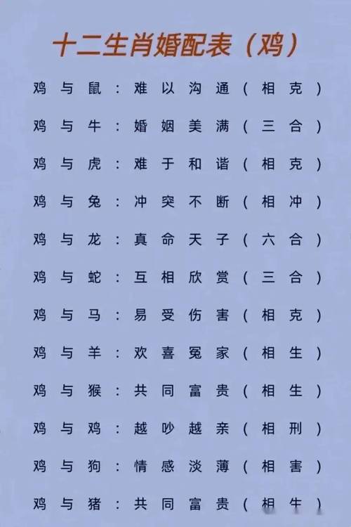除了以上几个星座,还有很多其他星座也适合与属鸡男结婚。属鸡男在择偶时,应根据自己的性格和需求,选择一个最适合自己的人。婚姻是一辈子的事情,慎重选择,才能幸福美满。