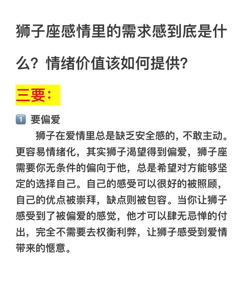 狮子座非常重视面子和自尊,在爱情中也很看重尊严。他们需要对方尊重和认可自己的价值,并不会容忍任何轻视或侮辱行为。狮子座在双向奔赴中渴望获得对方的肯定和赞美。