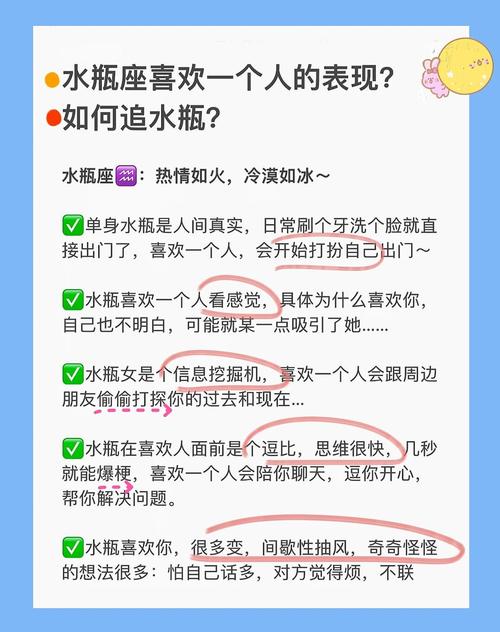 水瓶通常都比较理智的人,但如果他们喜欢你,他们也会做一些浪漫的事情来表达他们的感情。他们可能会给你送一些小礼物,或者带你去一些特别的地方,或者为你制造一些惊喜。