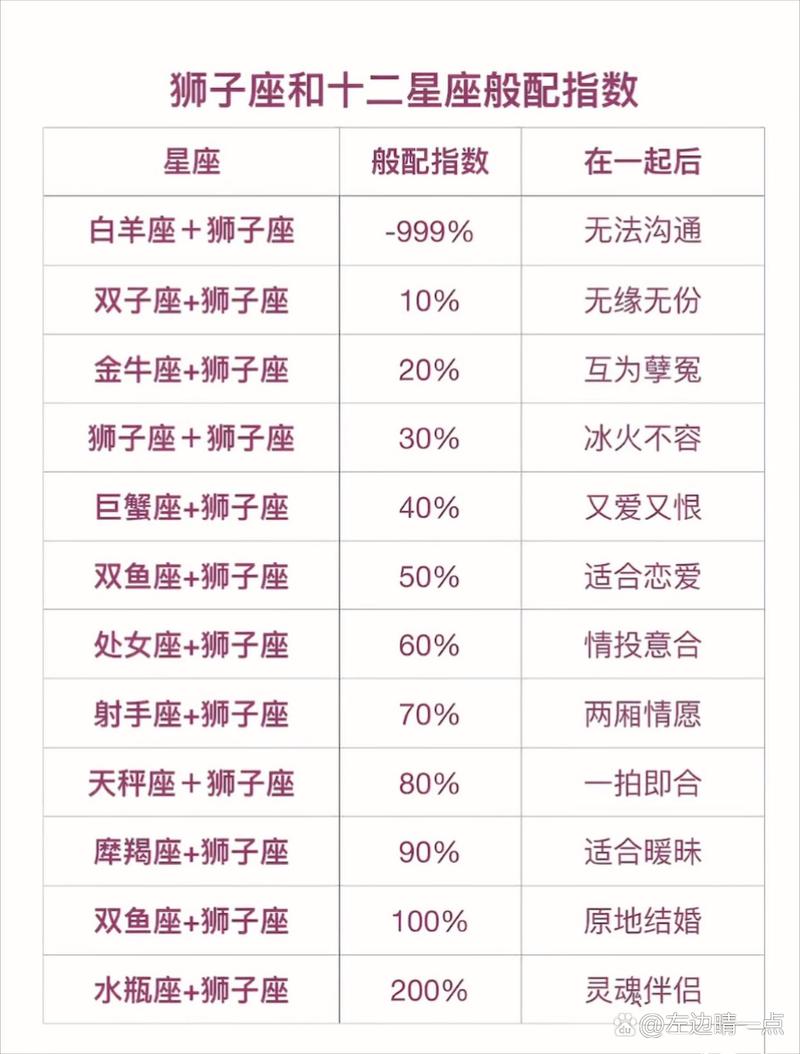 在星座配对的宇宙中,狮子座以其无与伦比的魅力和强烈的个性占据了重要地位。那么,在十二星座中,哪些星座与狮子座的匹配度最高,能够激发彼此的最大潜力呢?