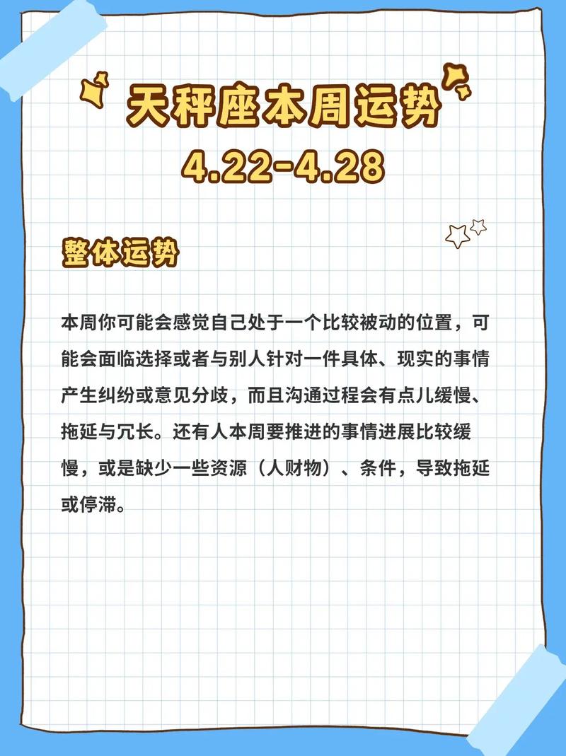 总运势:“生活在别处”是本月天秤的写照,你对身边的、具体的事务不感冒,对遥远的、抽象的事物充满兴趣,参加朋友聚会、学术的次数也增多,讨论令你获益良多。只是生活节奏经常被一些临时变卦打乱,却令你有机会看见许多事物的另一面。及至下旬,情绪控制力变得更弱。时常为些小概率的事忧心忡忡,影响正常生活。&8221;爱情:上中旬的相对,多因新缘分降临,或是天秤改变了看问题的角度。单身天秤接触异性的层面变得丰富,挑选的目光也和平时不太一样。恋爱男女精神增多,如果没有共同的兴趣爱好,往往容易爆发争吵。下半月起,挫折、失落感接踵而来。恋爱男女相互多有埋怨,却纠结于心。财运: