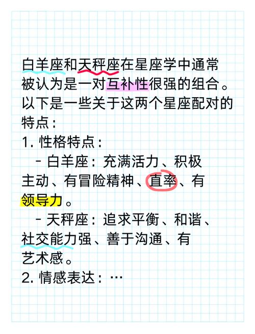 天秤座生性优雅、追求平衡,重视和谐。白羊座则是热情冲动、独立自主,凡事喜欢占据主动。这种性格上的差异,既能带来互补的优势,也能引发激烈的冲突。