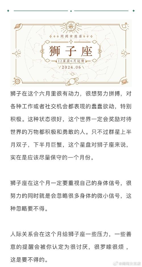 在感情方面,1月的星象为狮子座带来了激情四溢的时刻,同时也面临一些考验。如何平衡激情与现实,将是这个月的重要课题。