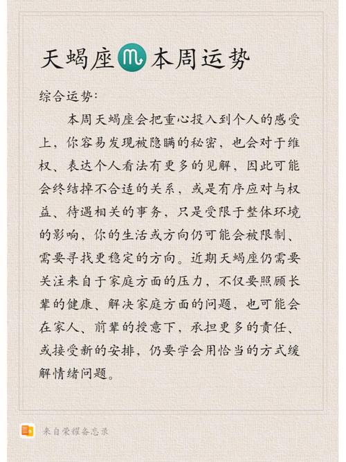 天蝎座的主宰行星冥王星与属狗的土星形成了有趣的相位。这种配置强调了深层次的情感体验和长期目标的实现。冥王星的影响使得你对潜在问题的敏感性增强,而土星则提供了稳定的支持,帮助你在面对复杂情况时保持理性和稳重。