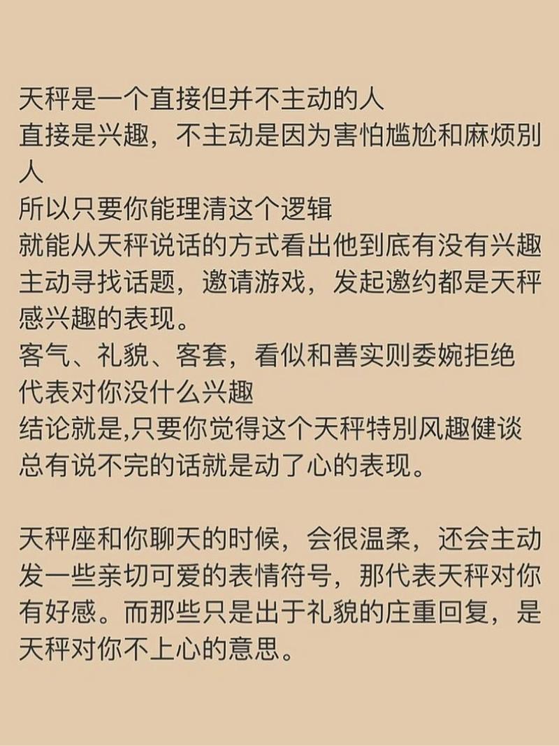 天秤座的兴趣广泛而多样。他们被美、和谐和人际交往所吸引。他们渴望知识、体验,并对世界的各种可能性保持开放的态度。通过探索这些兴趣,天秤座的人们丰富了他们的生活,并创造了一个充满意义和满足感的世界。